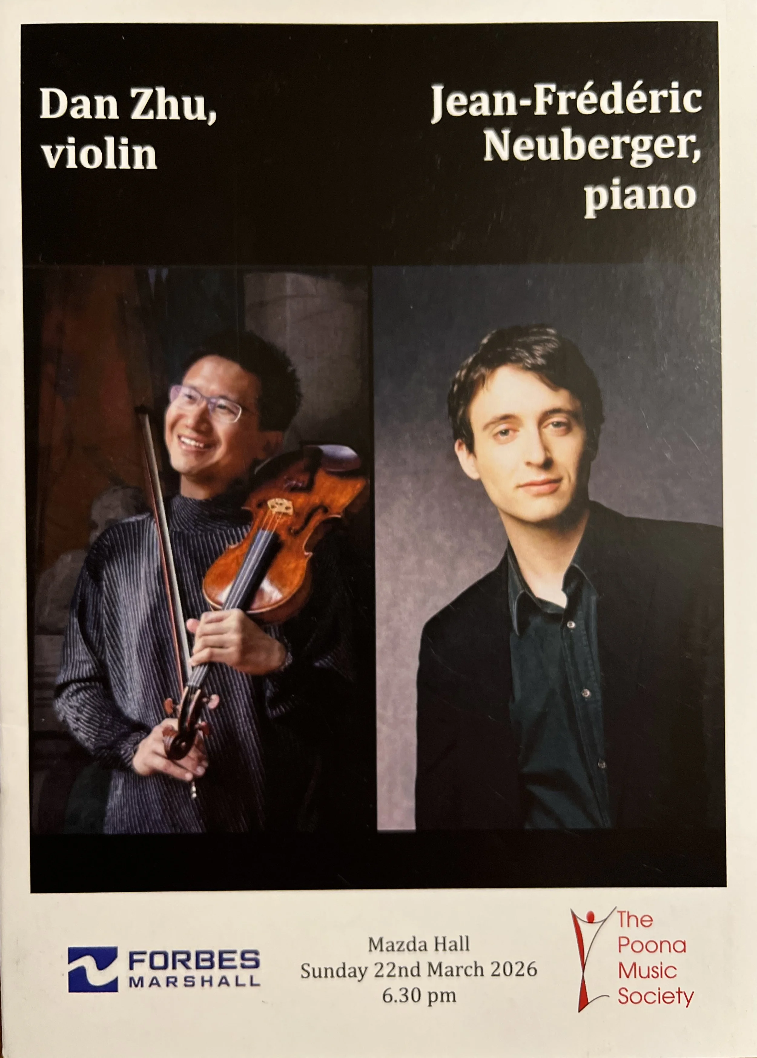 Dan Zhu begins his 6th Indian concert tour at the Poona Music Society in Pune, with his long time music partner, pianist and composer Jean-Frédéric Neuburger, in a duo program by Johann Sebastian Bach, Franz Schubert, and Ferruccio Busoni. More Details