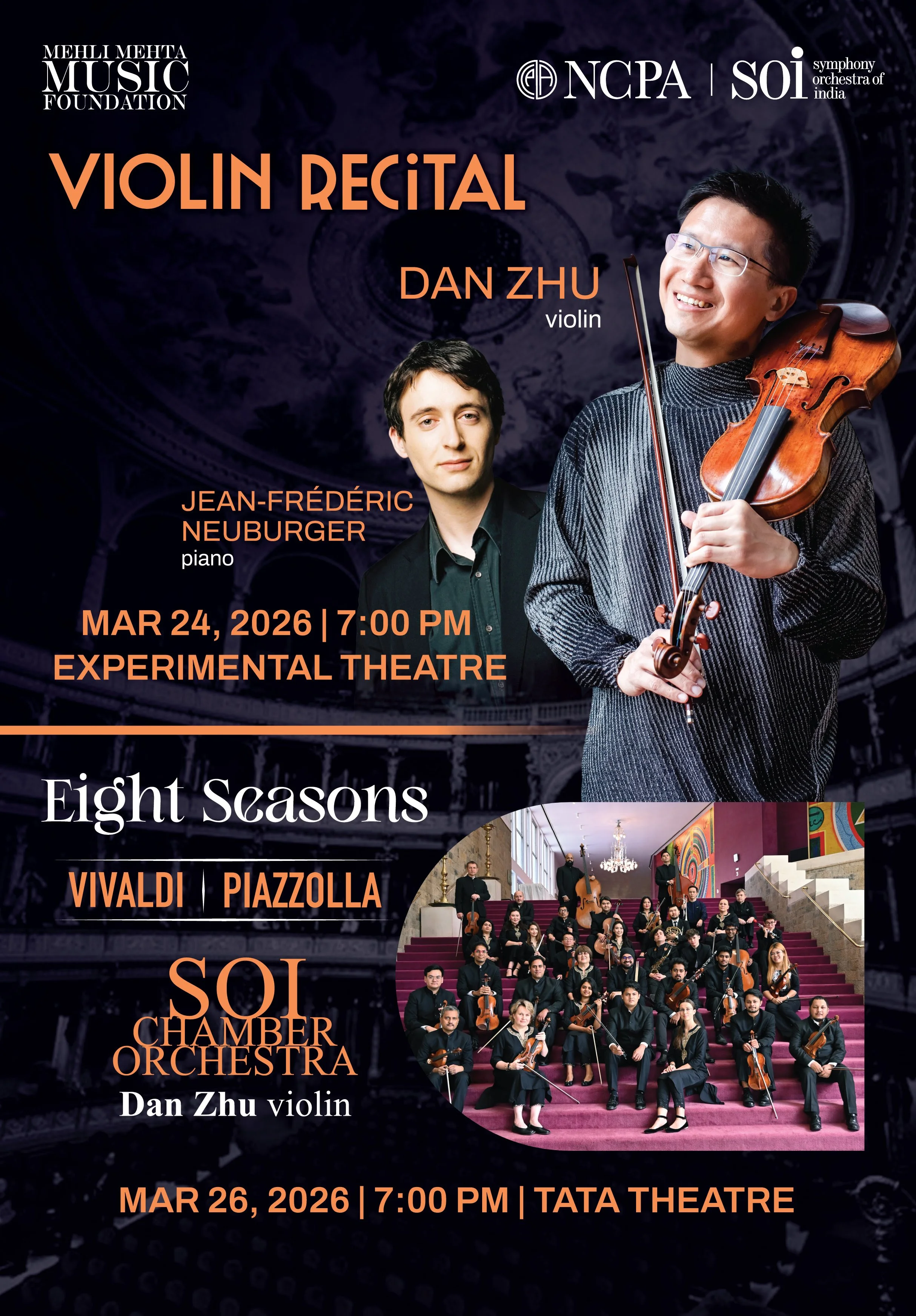 Dan Zhu and pianist Jean-Frédéric Neuburger continues their concert tour at the NCPA in Mumbai, with two sold-out evenings of duo recital program (Bach, Schubert, Busoni) and leading the SOI Chamber Orchestra on “8 Seasons” by Antonio Vivaldi and Astor Piazzolla. Concert details